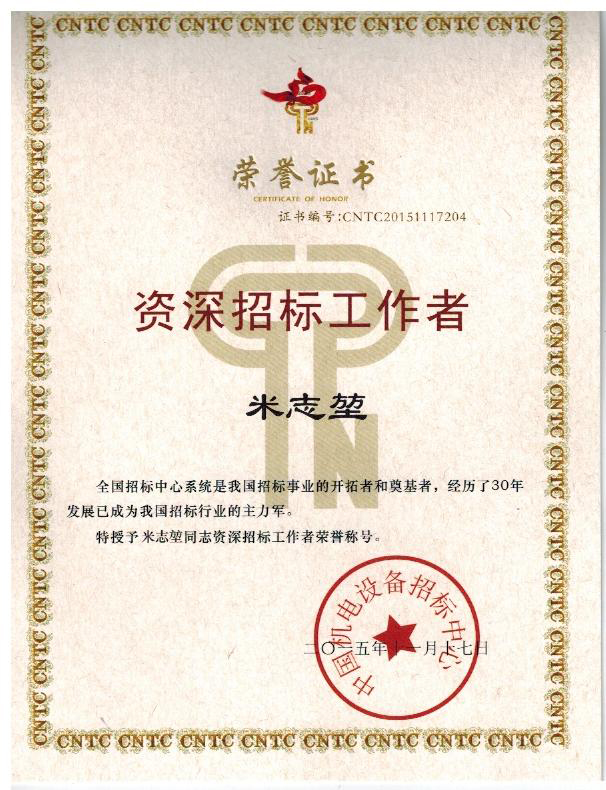 米志堃同志-資深招標工作者
