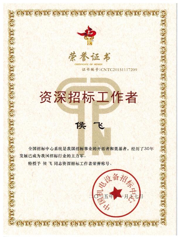 侯飛同志-資深招標工作者